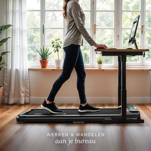 Bez námahy striedajte sedavú prácu s aktívnym pohybom bez toho, aby ste prerušili svoju rutinu. Bežecký pás sa perfektne zmestí pod stôl na sedenie aj státie a umožňuje vám chodiť počas práce, stretnutí alebo telefonovania.