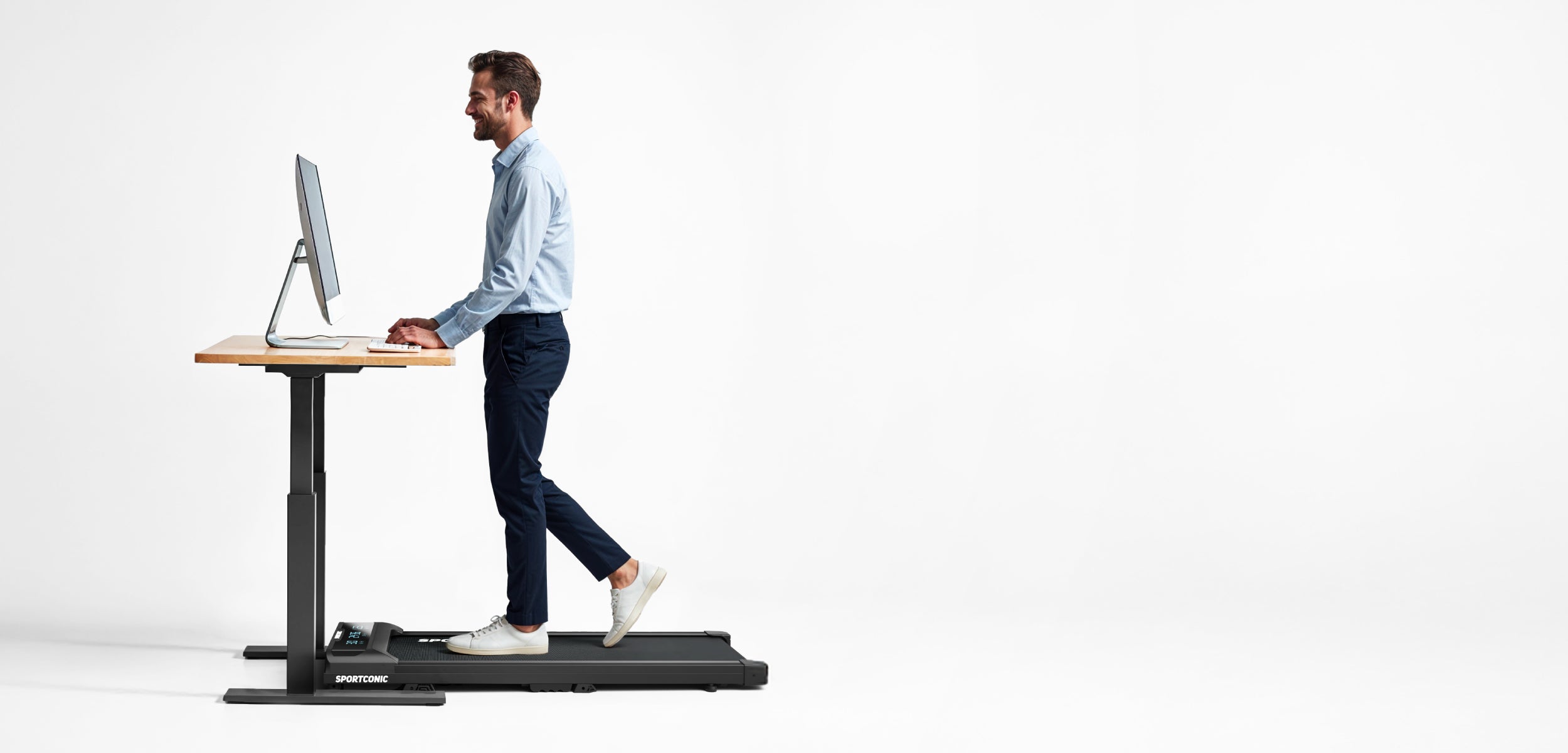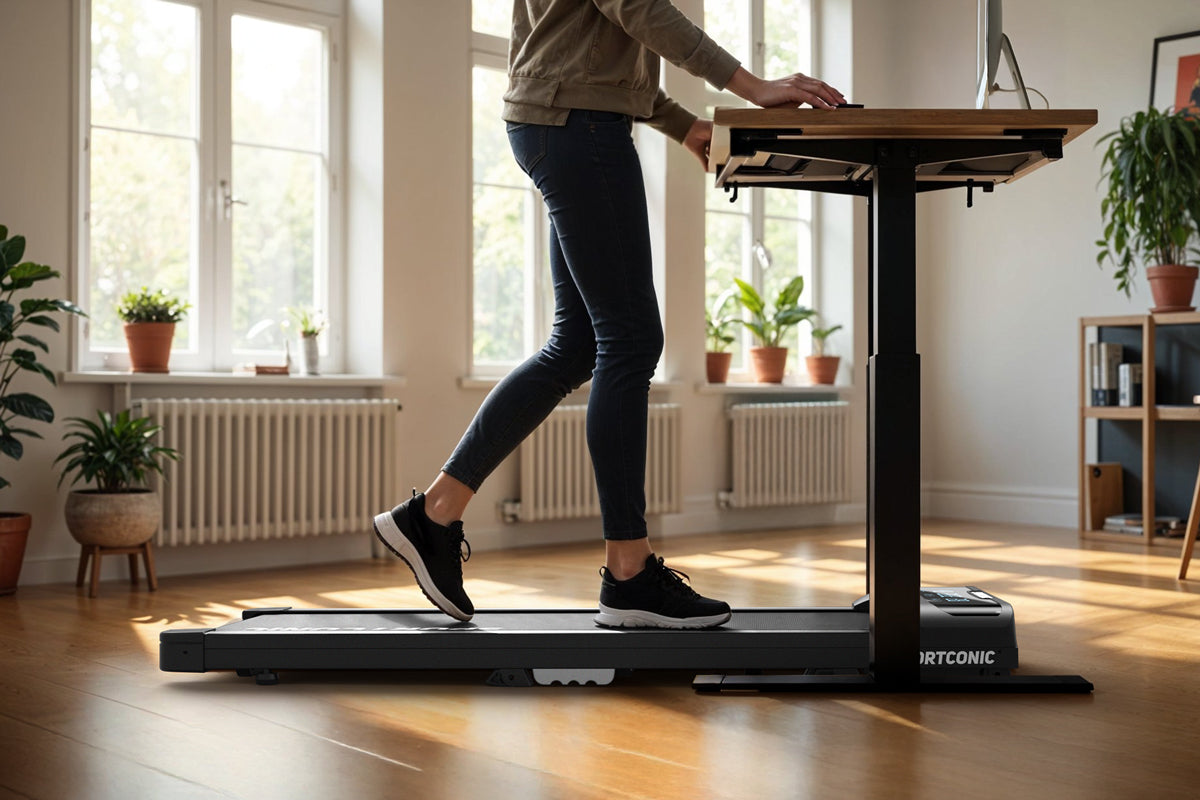 Bez námahy striedajte sedavú prácu s aktívnym pohybom bez toho, aby ste prerušili svoju rutinu. Bežecký pás sa perfektne zmestí pod stôl na sedenie aj státie a umožňuje vám chodiť počas práce, stretnutí alebo telefonovania.