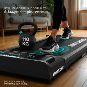 Tichý, kompaktný bežecký pás s rýchlosťou do 6 km/h. Ideálny pod stôl alebo doma pred televízor. Nevyžaduje sa žiadna inštalácia, pripravený na použitie hneď po vybalení.