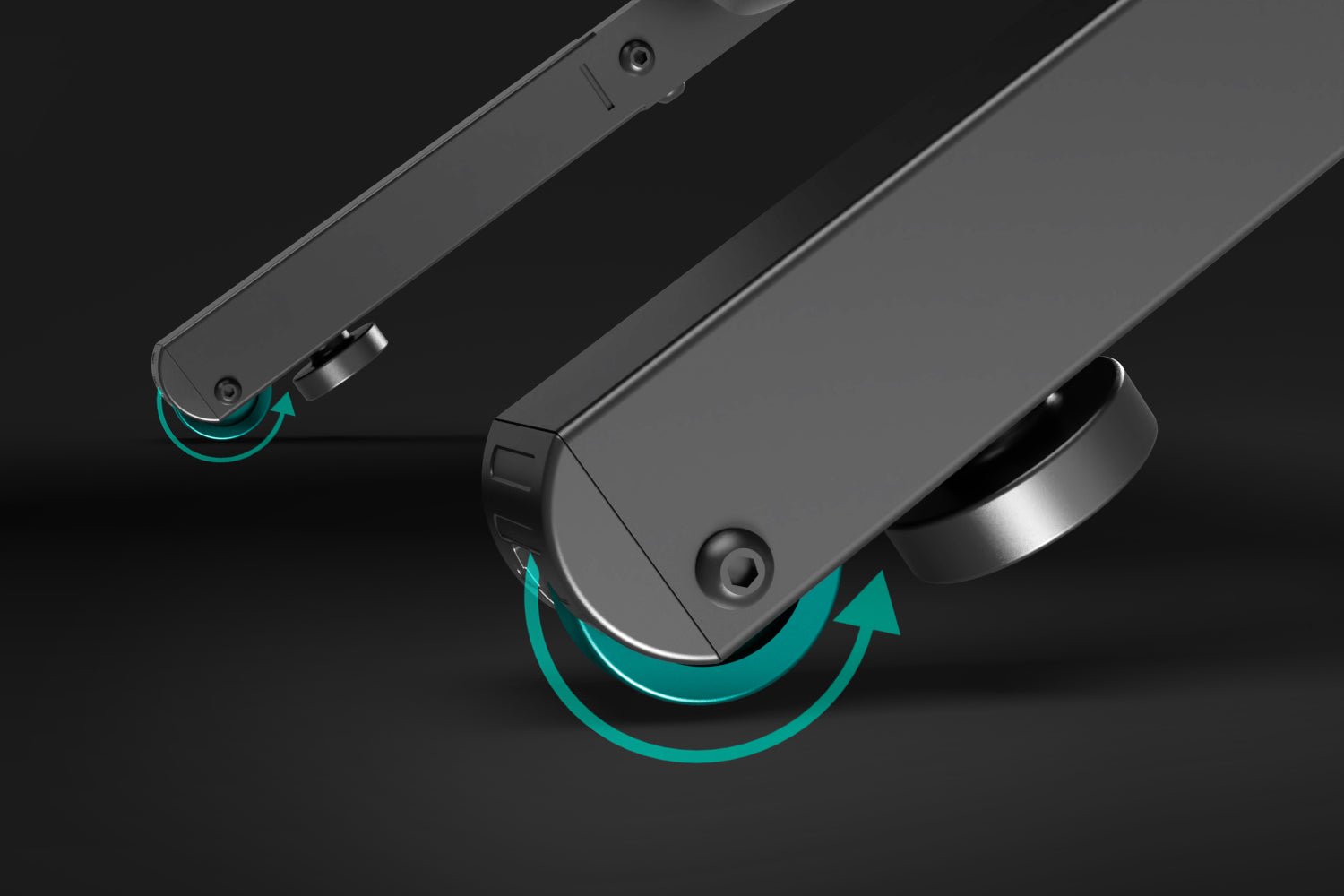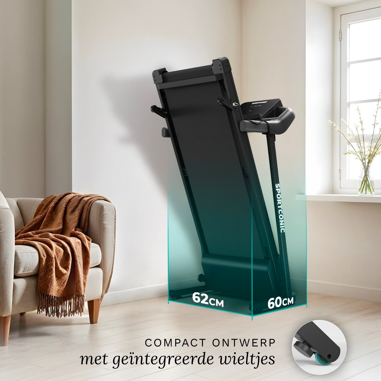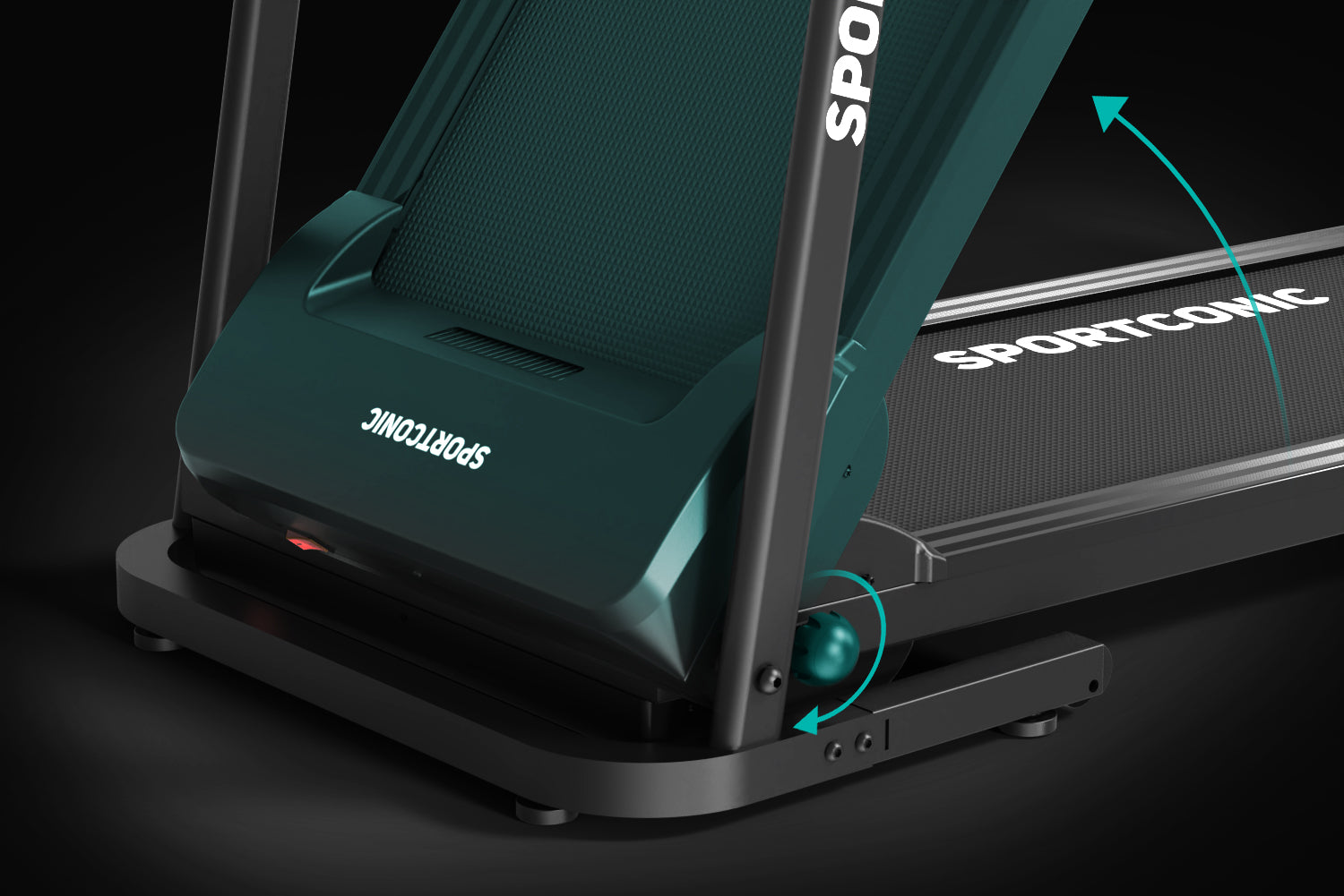 Po použití sa bežecký pás dá bez námahy uskladniť v priebehu niekoľkých sekúnd. Ľahko sa skladá a integrované transportné kolieska uľahčujú a uľahčujú jeho premiestňovanie.