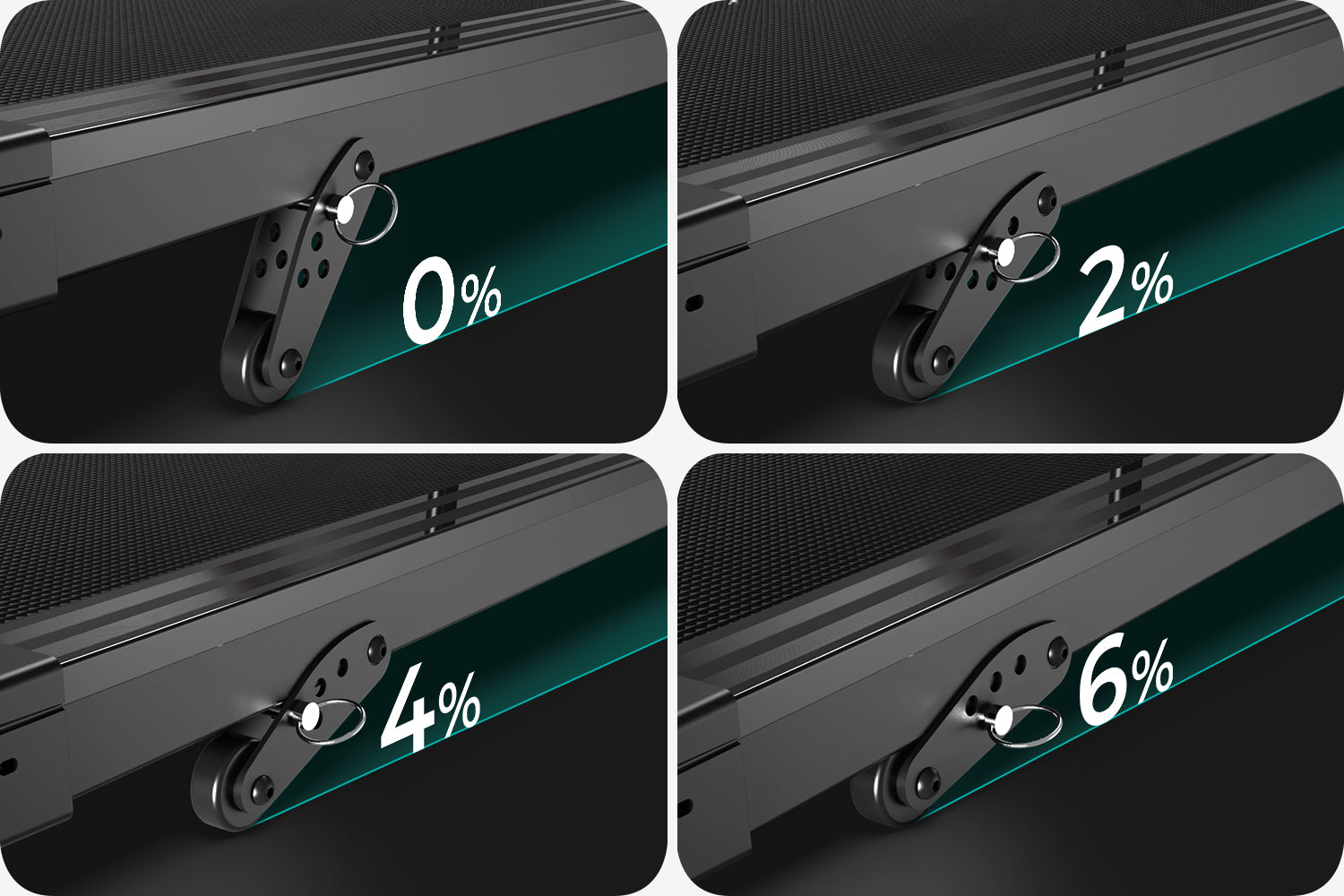 S rýchlosťou od 1 do 12 kilometrov za hodinu je bežecký pás ideálny na chôdzu aj beh. Chcete extra výzvu? Nastavte si sklon na 2, 4 alebo 6 percent a spálite až o 60 percent viac kalórií ako na rovnom povrchu.